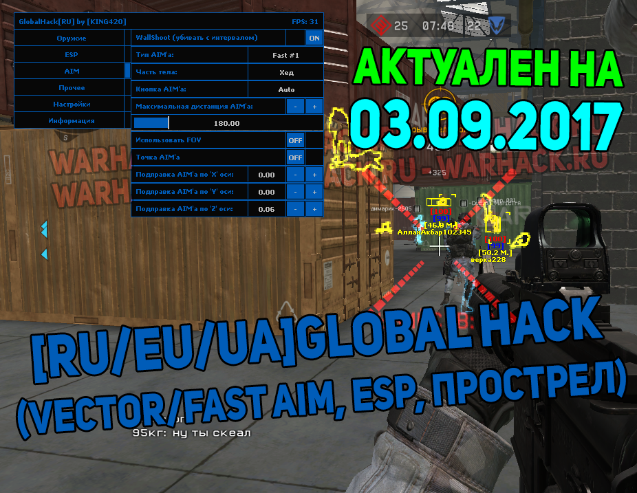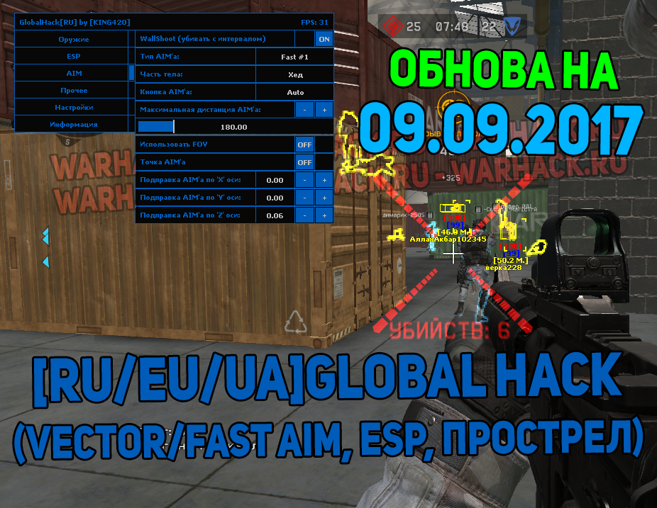 [RU/EU/NA] GlobalHack (Vector/Fast Aim, WallShot, ESP, Прострел) [01.09.2017]