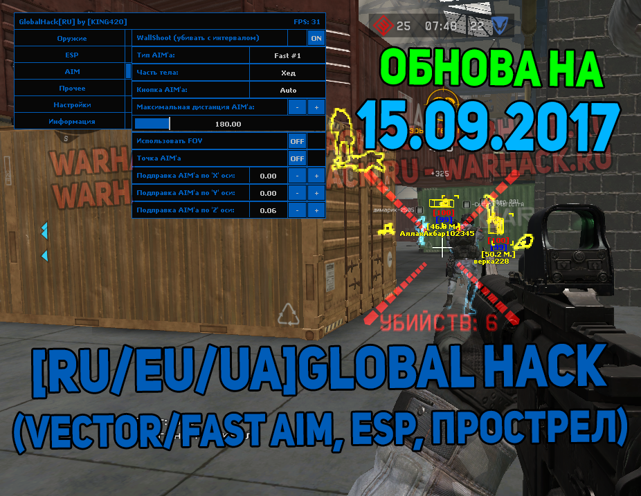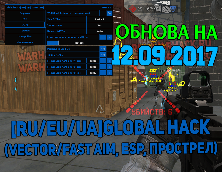 [RU/EU/NA] GlobalHack (Vector/Fast Aim, WallShot, ESP, Прострел) [12.09.2017]