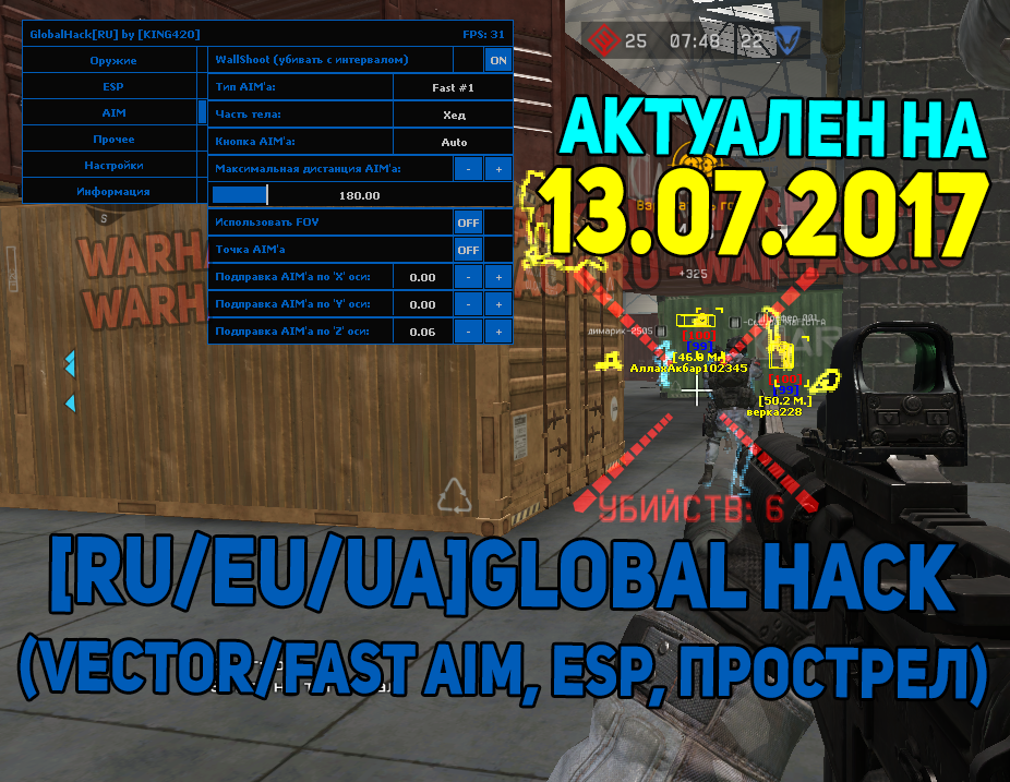 [RU/EU/NA] GlobalHack (Vector/Fast Aim, Анти-Затвор, ESP, Прострел) [07.08.2017]