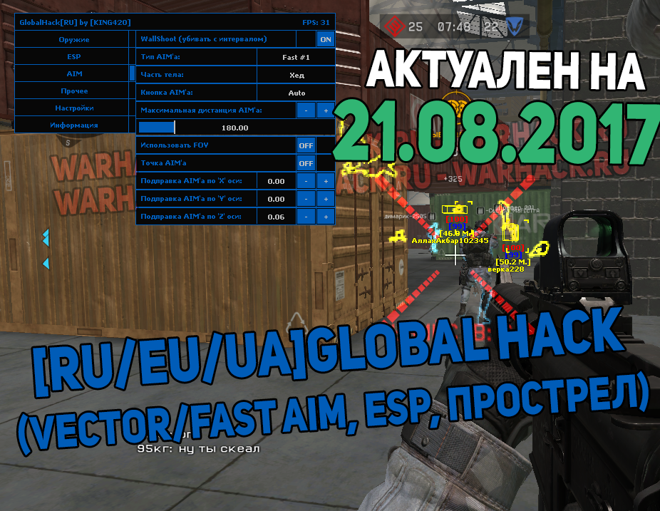 [RU/EU/NA] GlobalHack (Vector/Fast Aim, Анти-Затвор, ESP, Прострел) [21.08.2017]