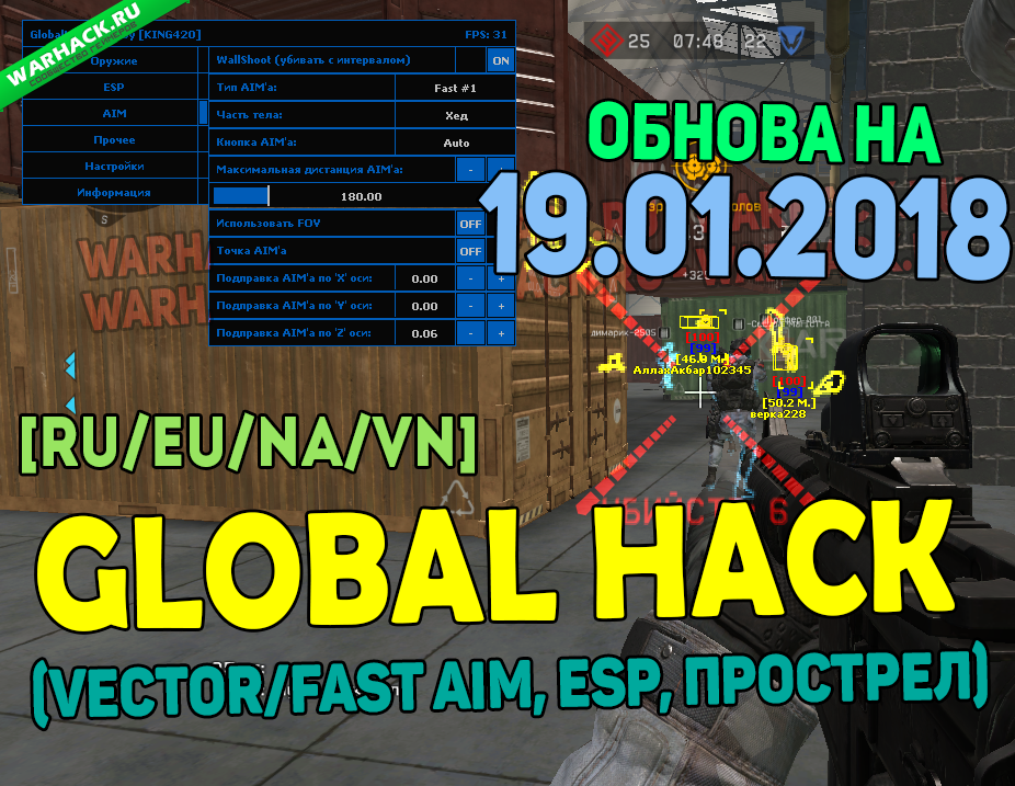 [RU/EU/NA/VN] GlobalHack (Vector/Fast Aim, WallShot, ESP, Прострел) [19.01.2018]