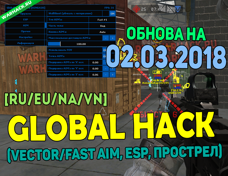 [RU/EU/NA/VN] GlobalHack (Vector/Fast Aim, WallShot, ESP, Прострел) [30.01.2018]
